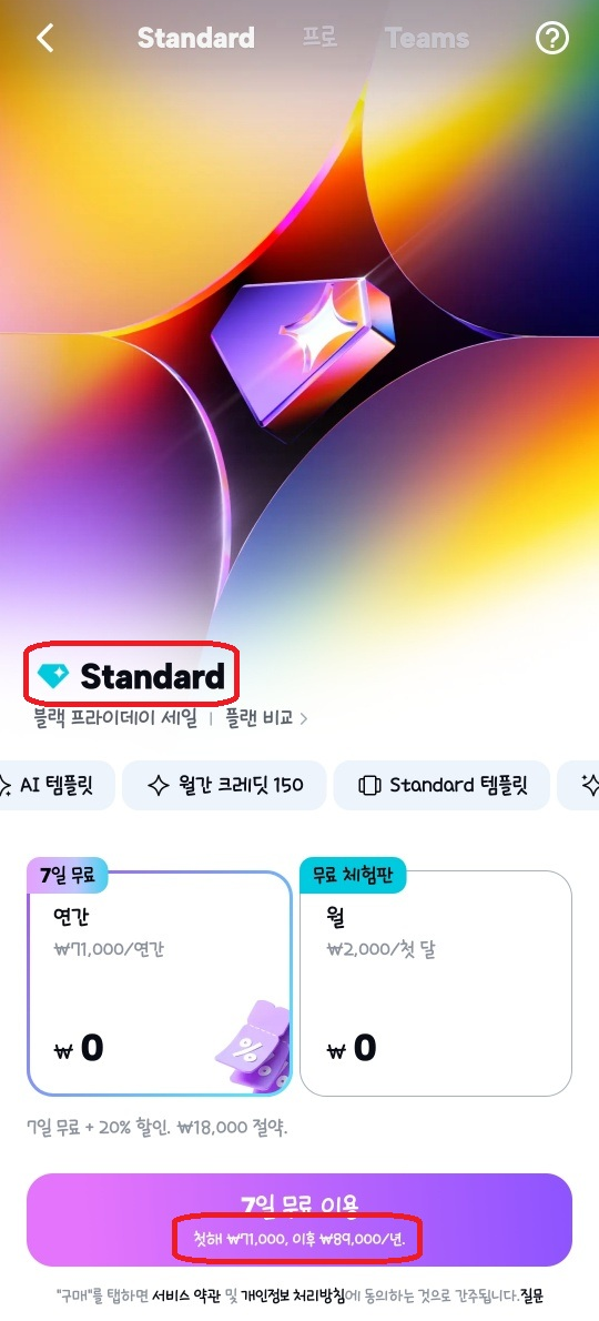 | 할인 조건 | 연간 플랜 / 앱 내 결제 시만 적용 |