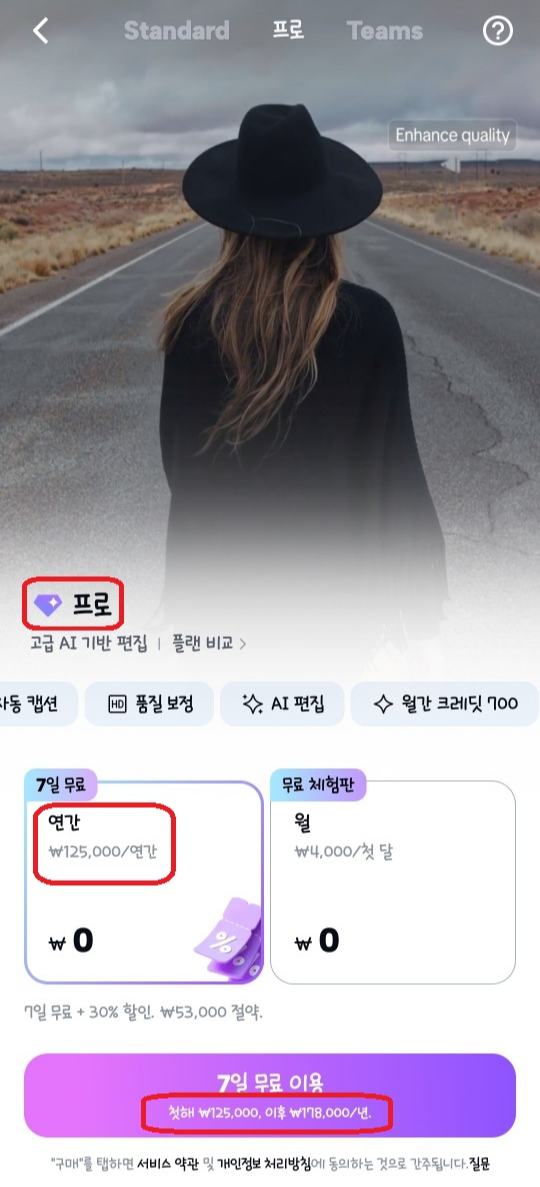 요즘 짧은 영상에서 자막은 시청 유지에 영향을 주는 핵심 요소입니다. 영상 퀄리티와 작업 효율을 동시에 챙기고 싶다면 프로 요금제 쪽이 훨씬 유리하며, 단순 기록용·취미용 편집이라면 스탠다드도 충분히 활용 가능합니다.